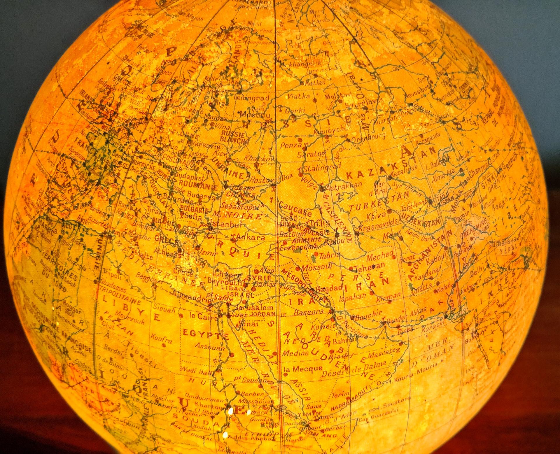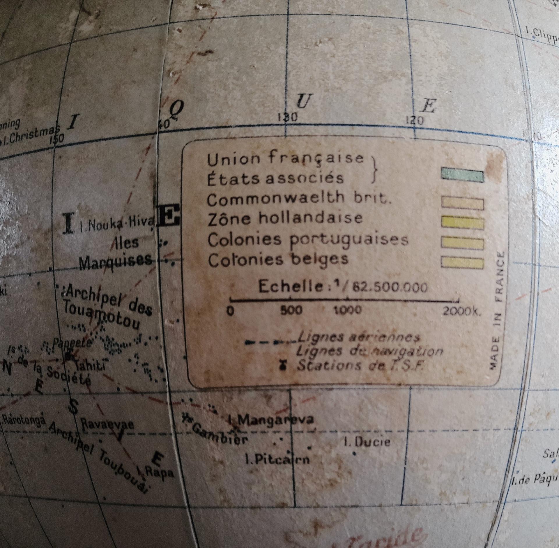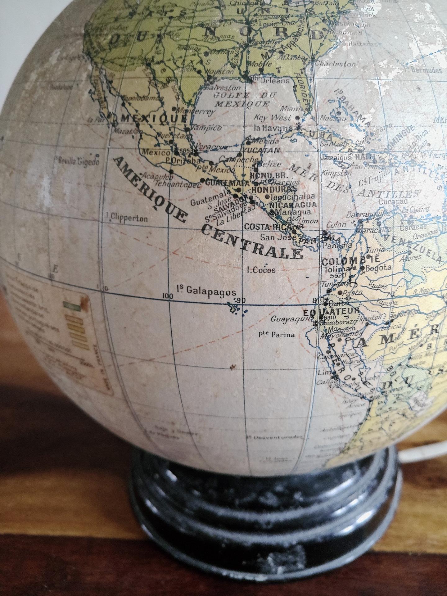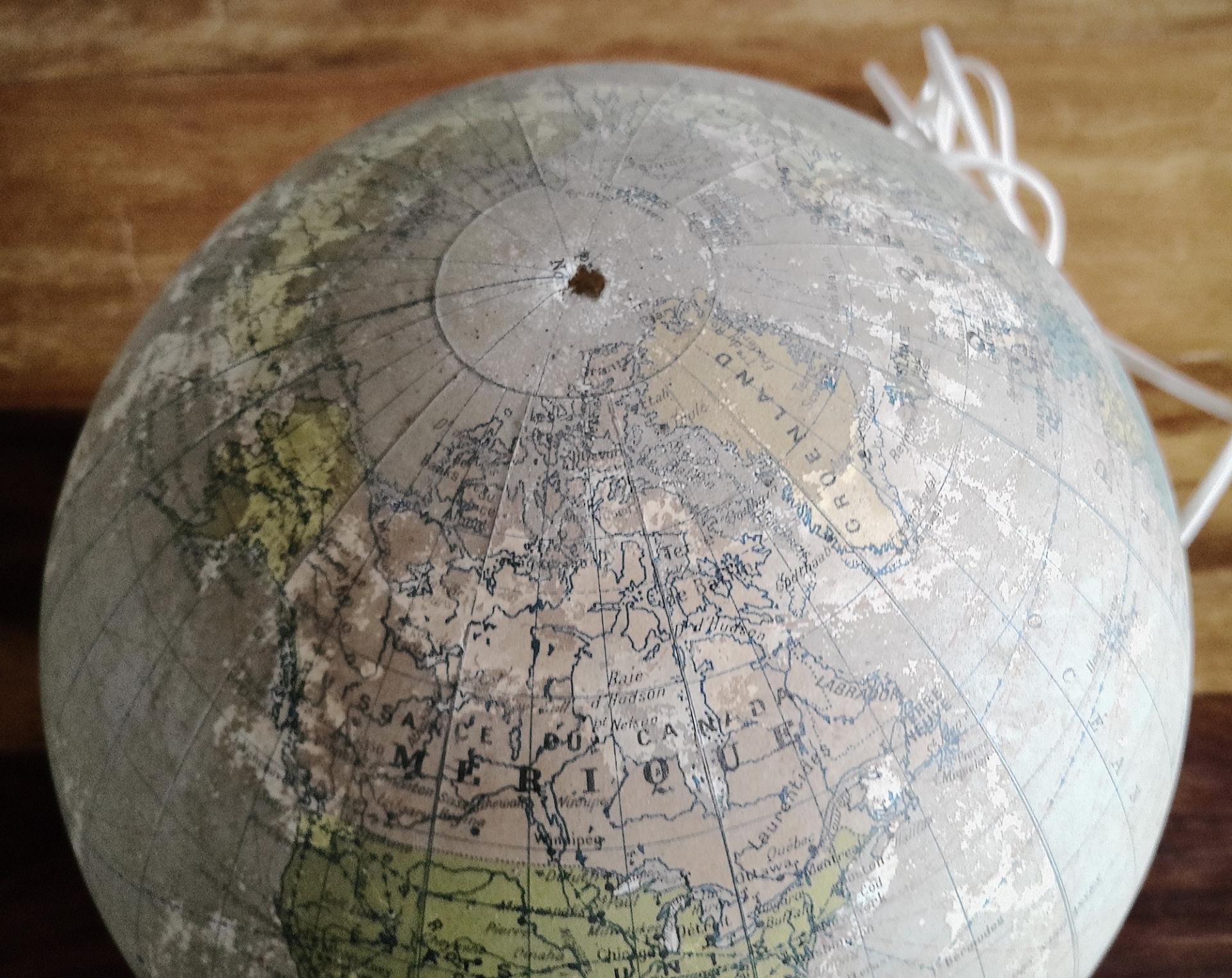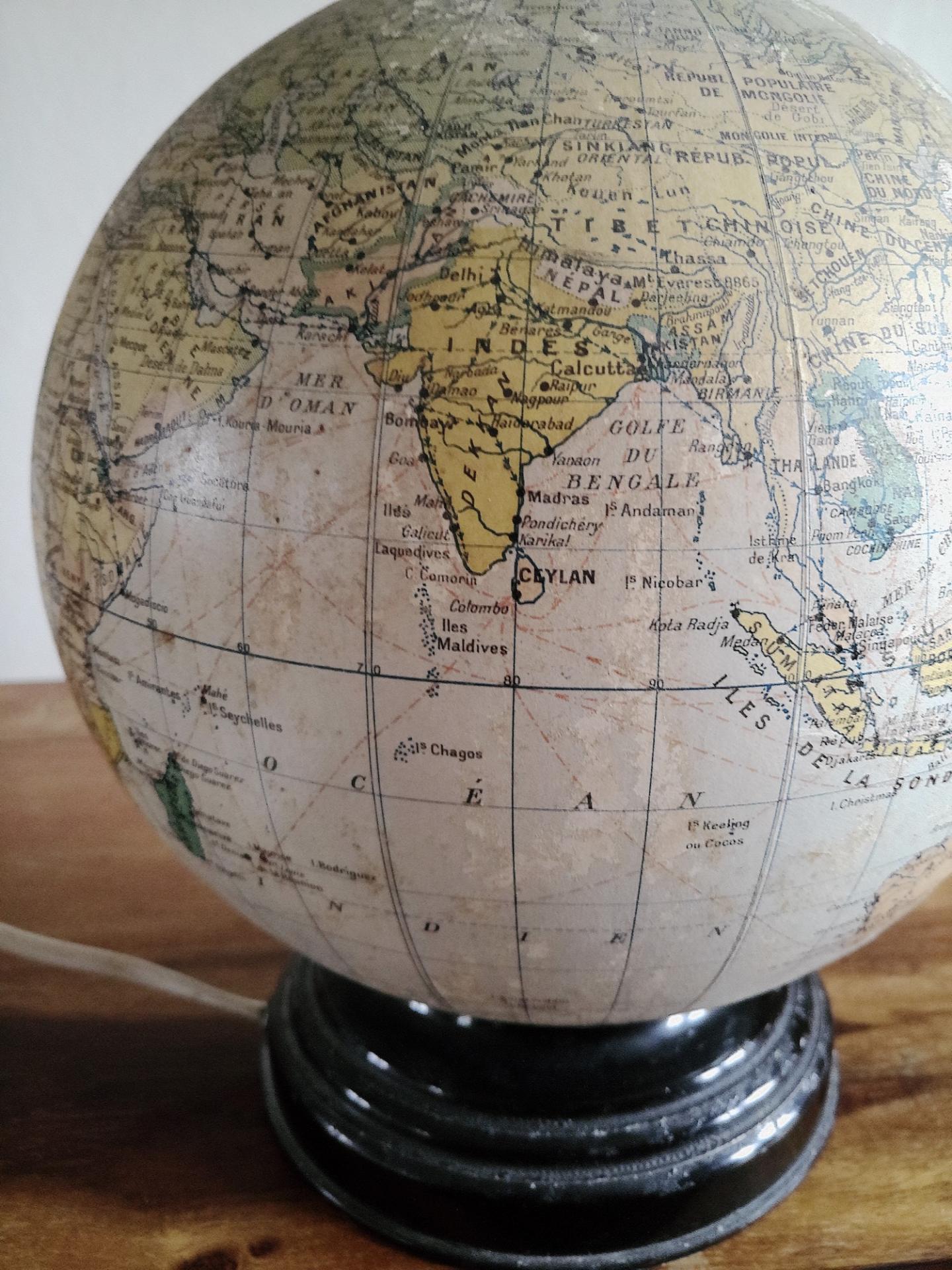 GLOBE TERRESTRE en verre, lumineux, France années 1950