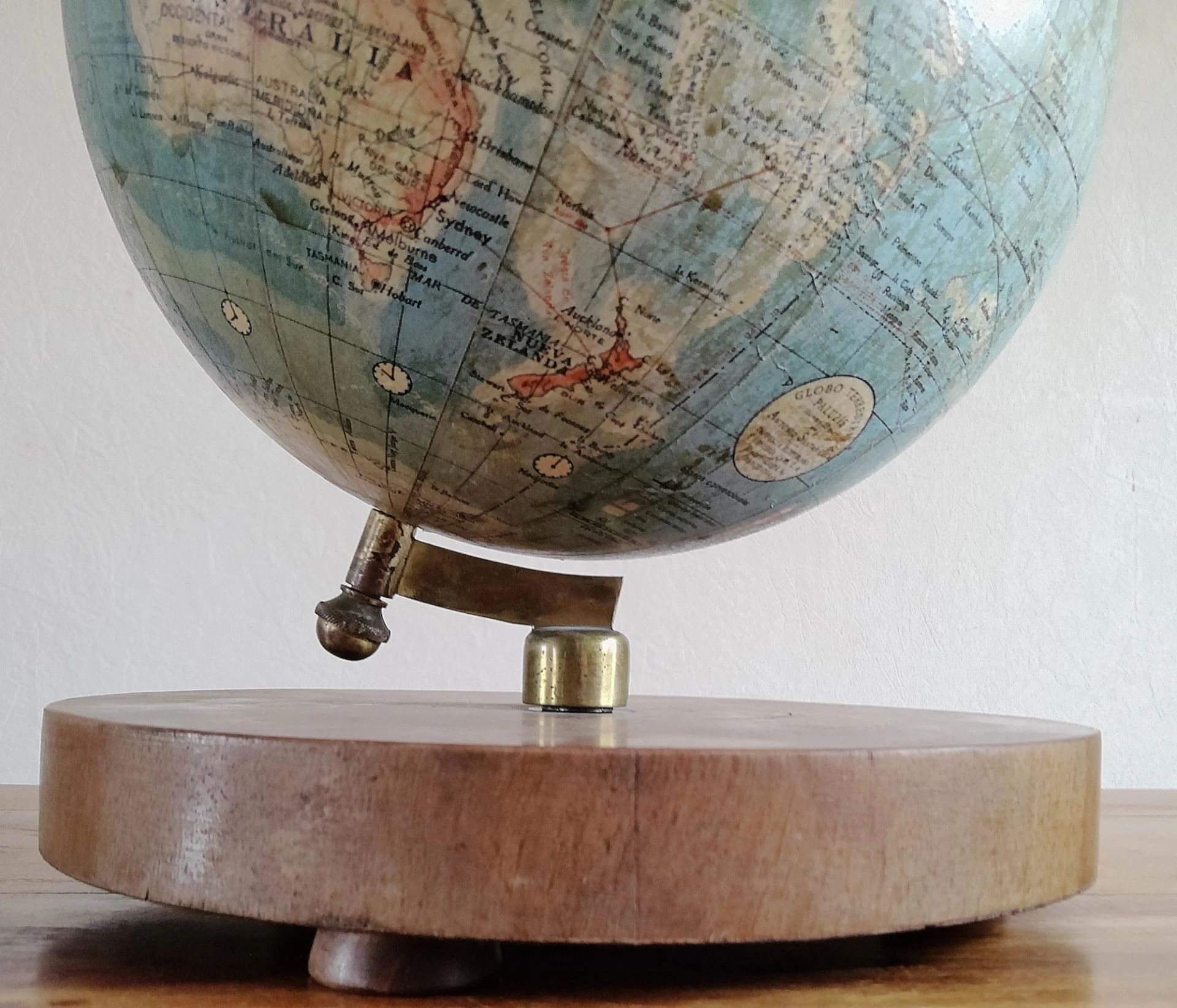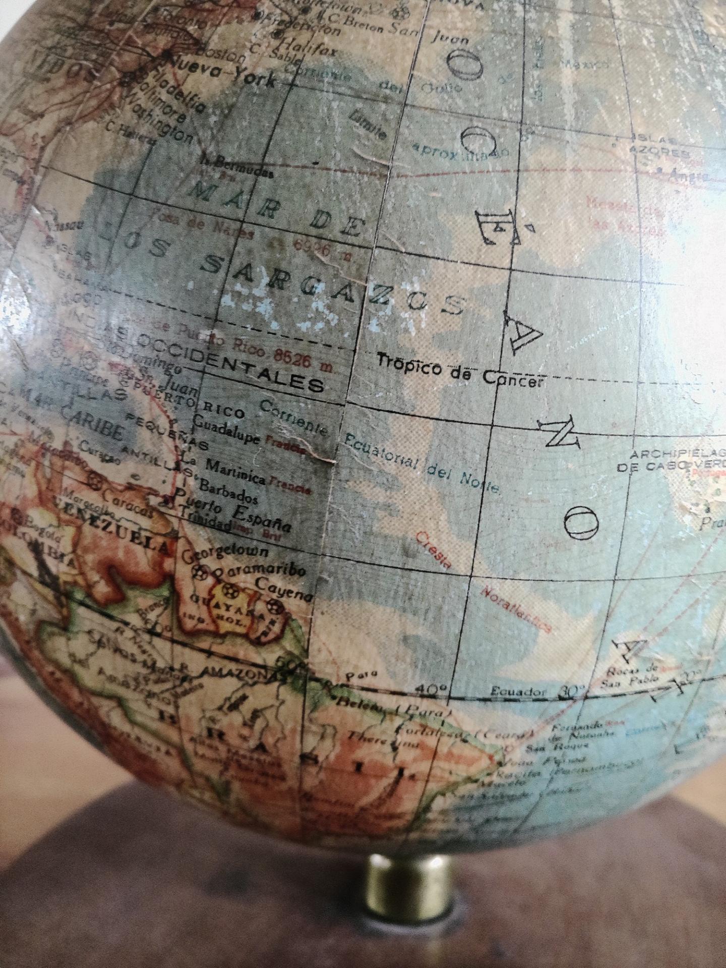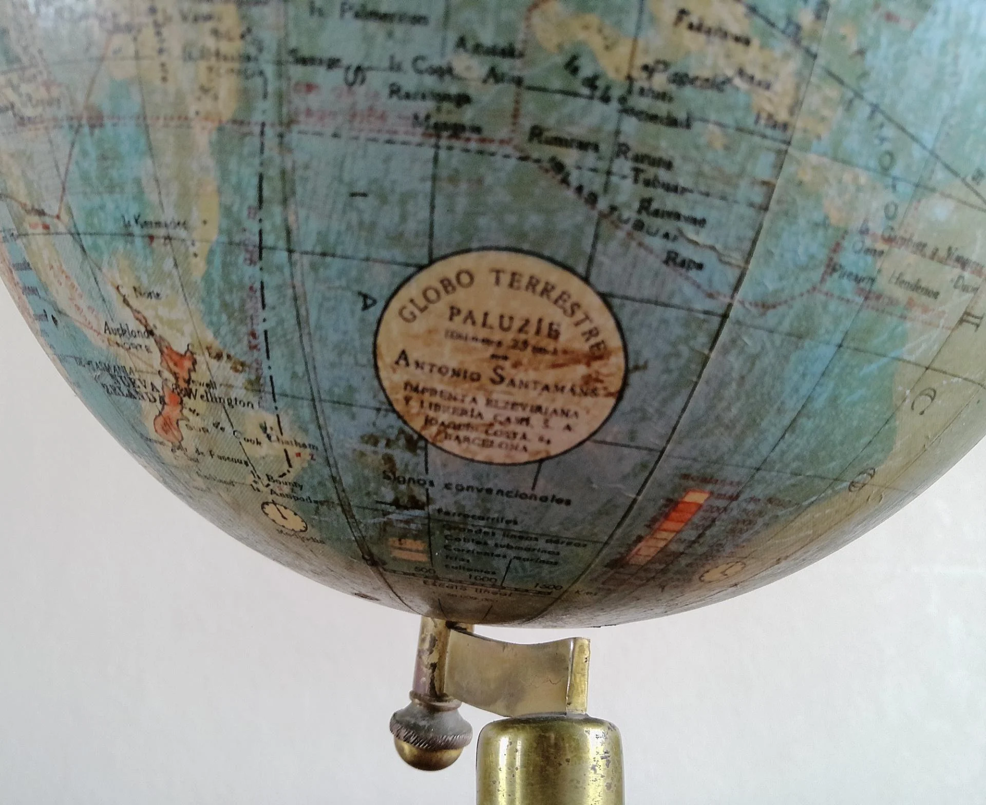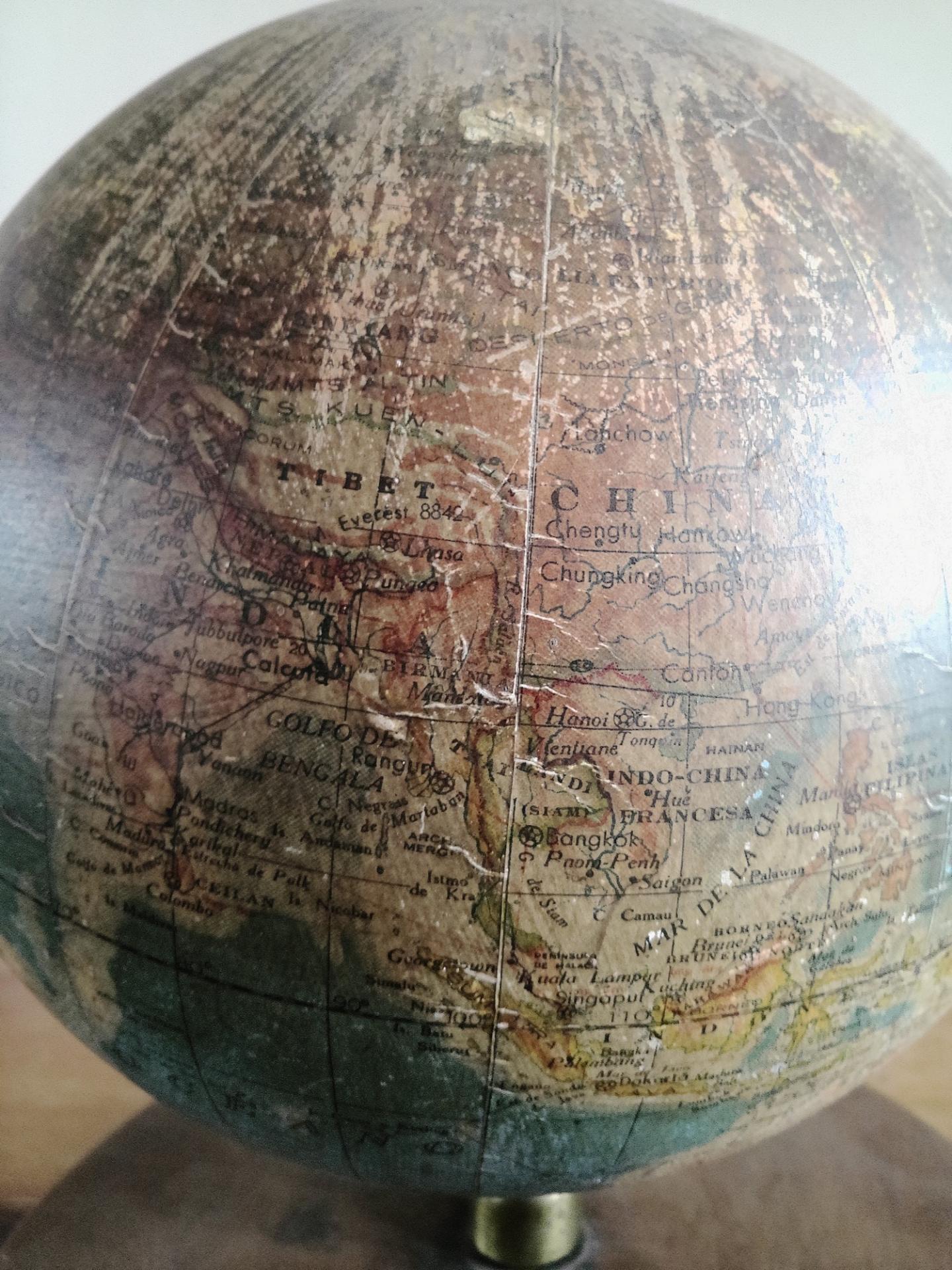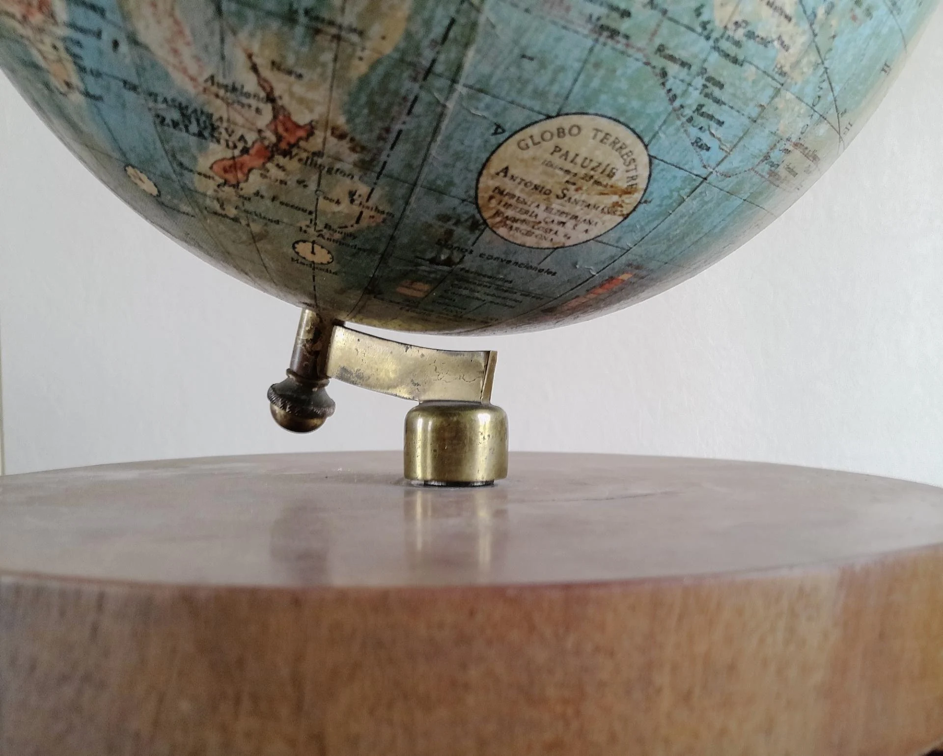 Globe terrestre ancien avec base en bois par Paluzie pour Antonio Santamáns Barcelona vers 1910-1930